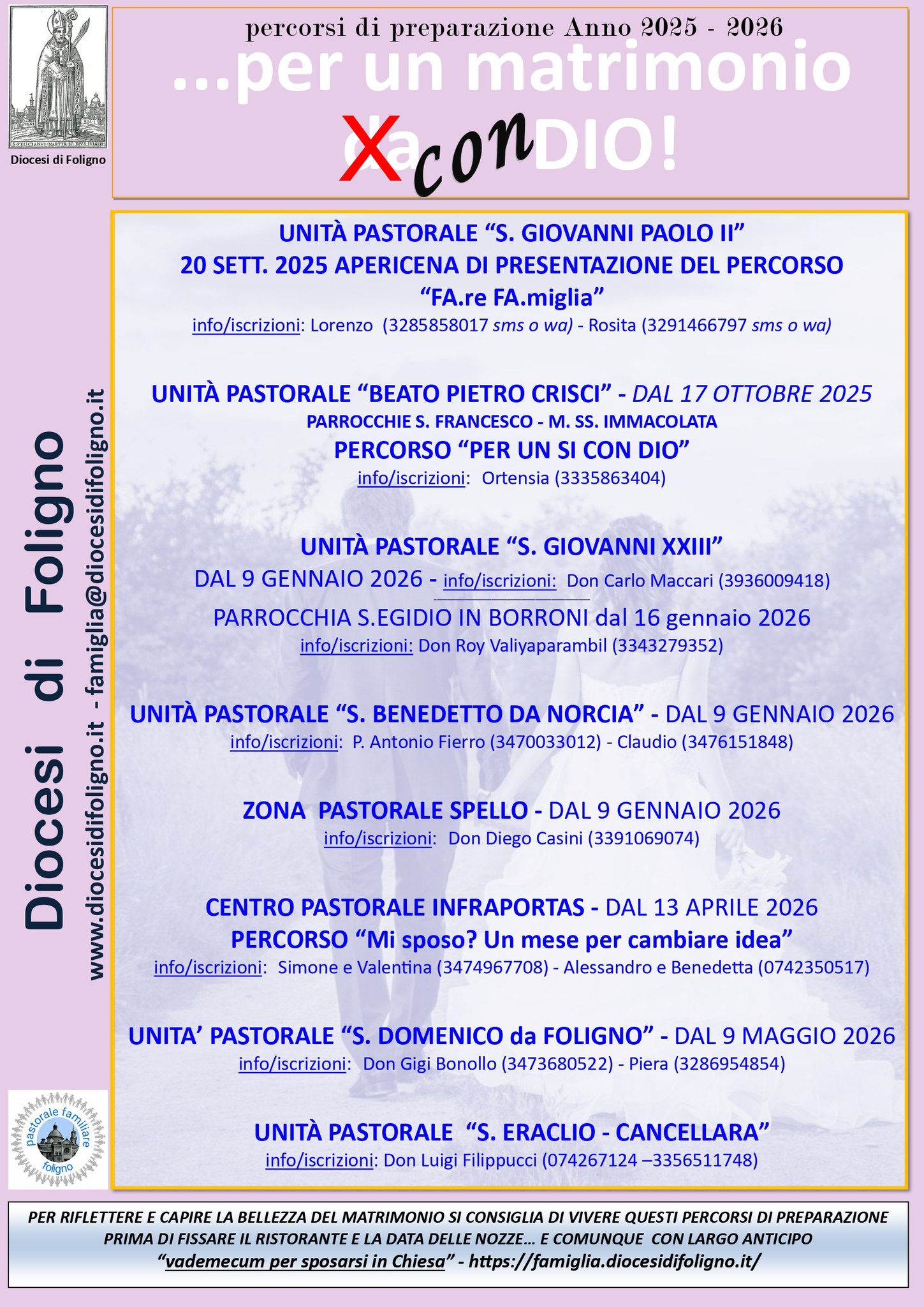 Tel. 340 5111467 - 0742350473 / Email: famiglia@diocesidifoligno.it